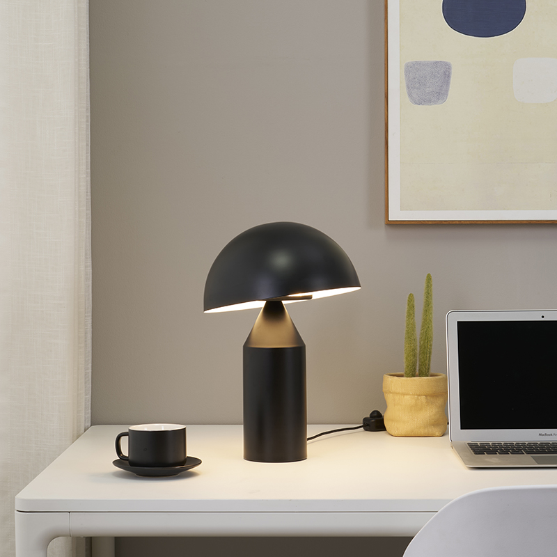The signature mushroom-shaped shade, crafted from premium metal, offers a focused downward glow that reduces eye strain. For ultimate precision, the adjustable lamp head allows you to effortlessly position the light exactly where you need it. Coupled with a smooth dimming function, you have full command over both the angle and the intensity of your illumination, from a bright task light to a soft ambient glow.