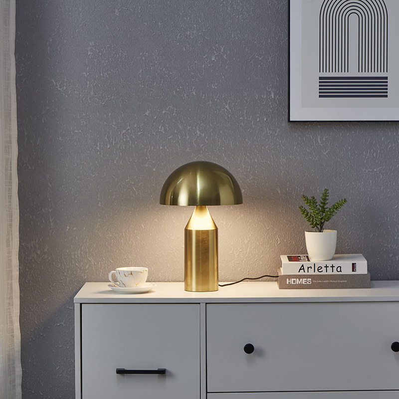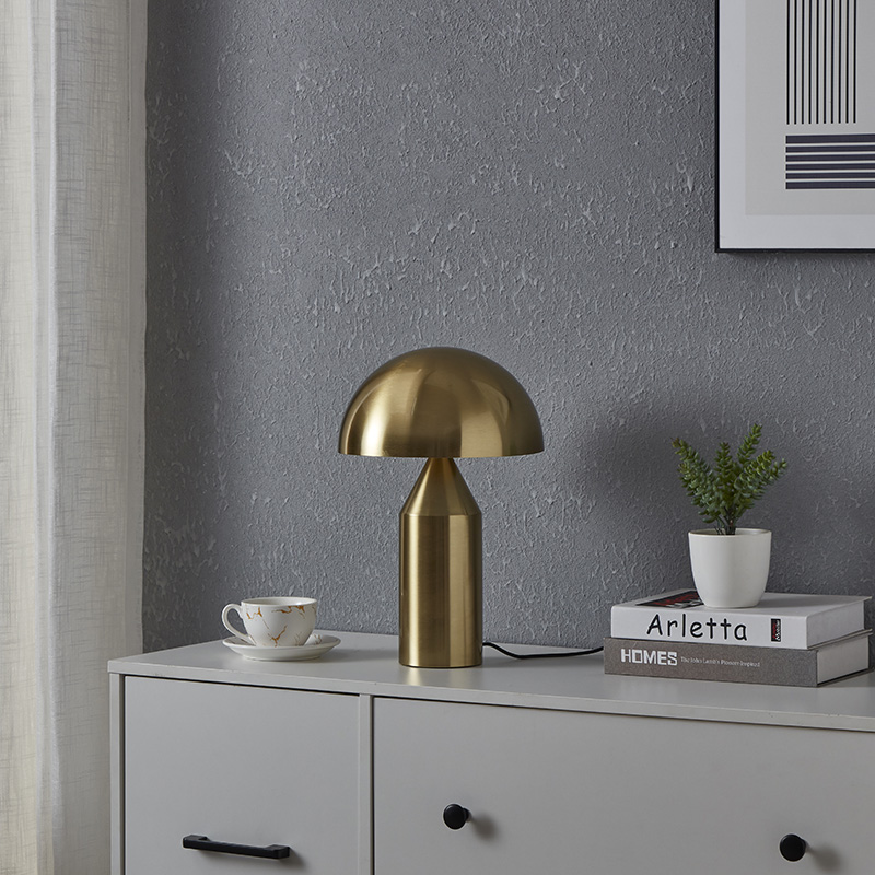 Modern Mushroom Metal Table Lamp - Dimmable Desk Light in Gold, Black & Chrome